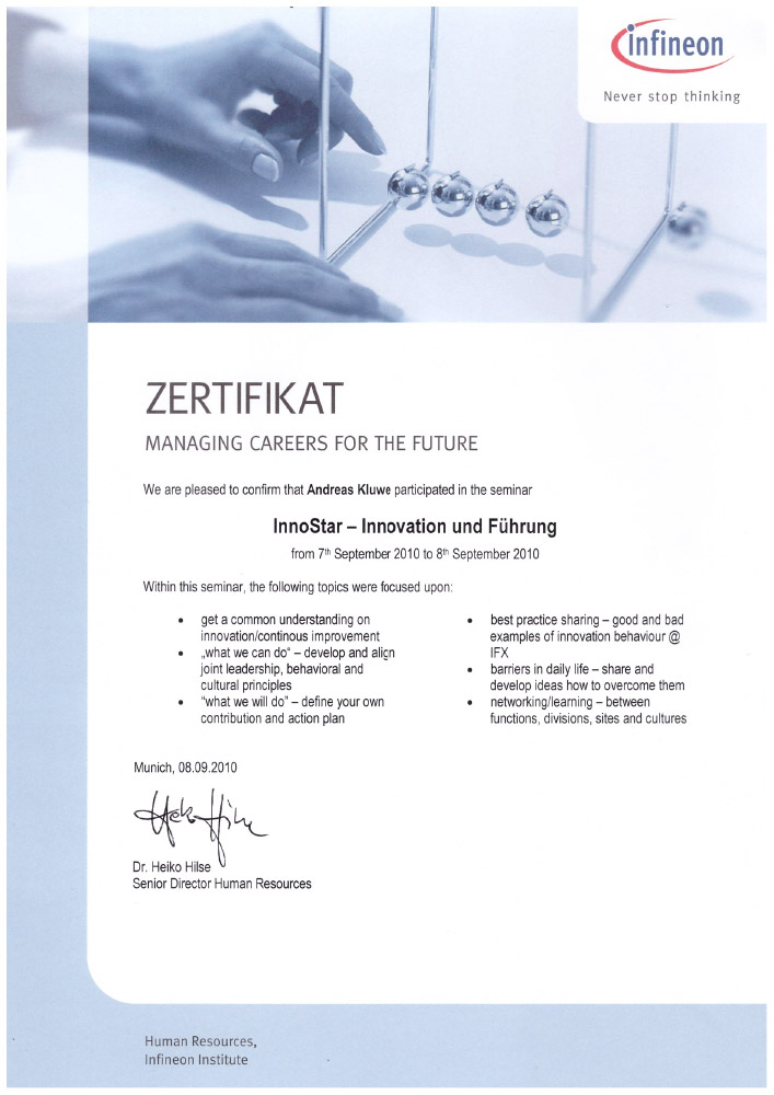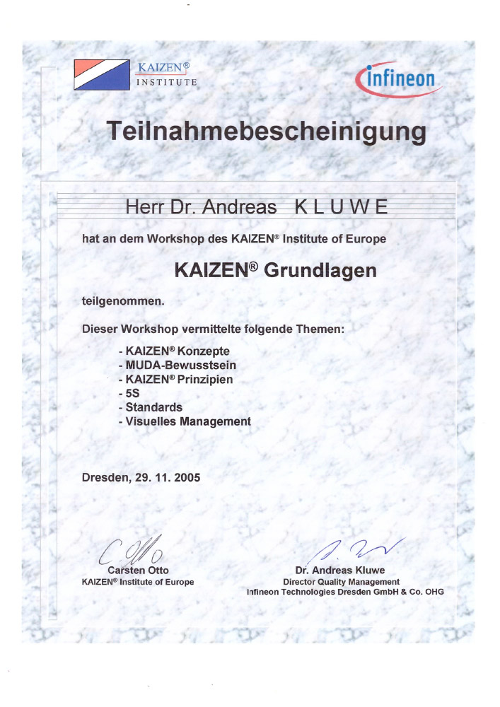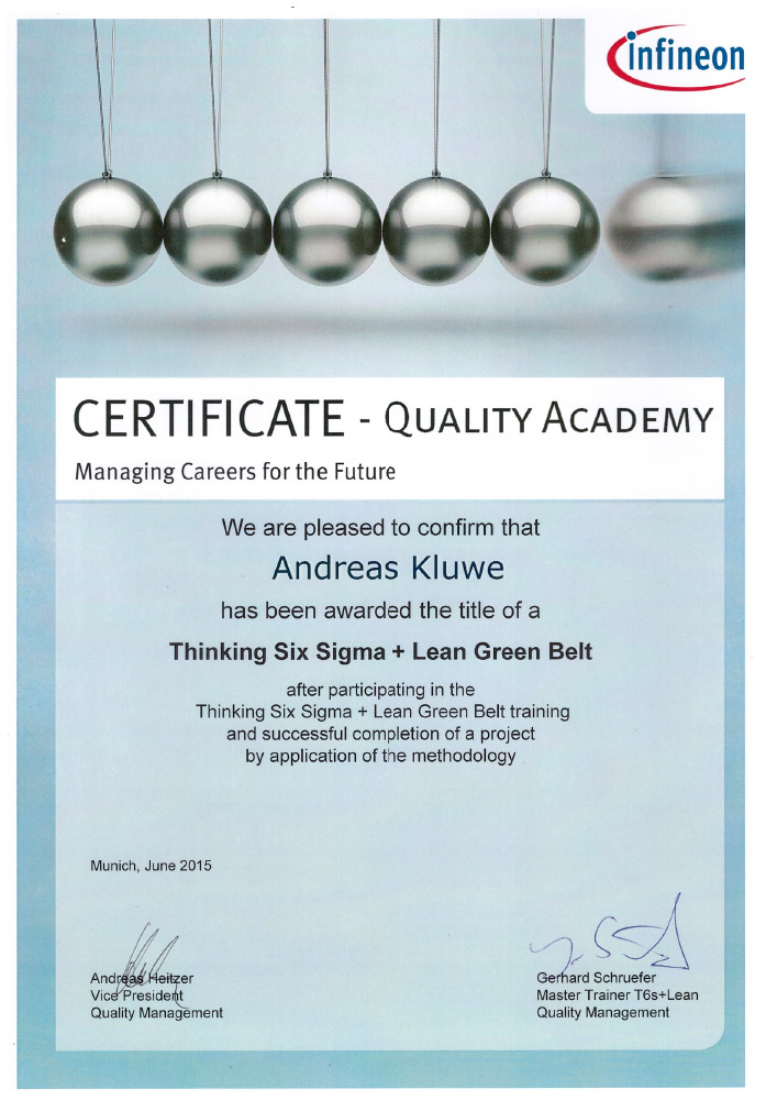Zurück in Deutschland ging es als Leiter des Qualitätsmanagements eines großen, innovativen Halbleiterwerks. Hier entwickelte sich meine Leidenschaft für Qualität und kontinuierliche Verbesserung. So führte ich im Werk zusammen mit dem Kaizen Institute Europa einen kontinuierlichen Verbesserungsprozess ein, der heute noch aktiv ist.